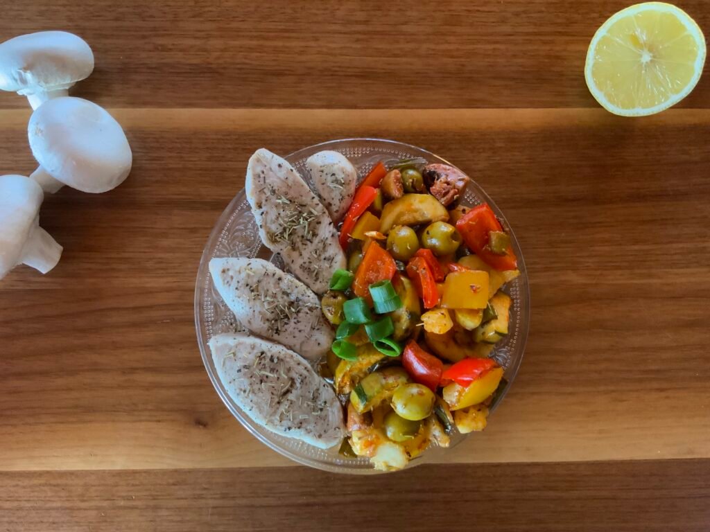 Mediterranes Ofengemüse (mit Hühnchen)